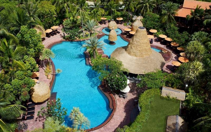 De foto's zeggen al genoeg toch? Anantara Hua Hin Resort is een prachtig 5-sterrenhotel vlakbij Hua Hin. Dit luxe hotel is als een traditioneel Thais dorp gebouwd en heeft een te gek zwembad in de groene tuin. Niet alleen heb je waterplezier in de twee zwembaden, je loopt ook zo naar het privéstrand waar je een duik kunt nemen in de Golf van Thailand. Vergeet je snorkelset niet mee te nemen!