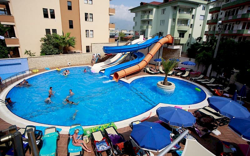 Gelegen in de Turkse Rivièra, bevindt Almera Park zich op een ideale locatie op slechts 350 meter van het strand en 2 kilometer van het levendige centrum van Alanya. Dit 3-sterrencomplex bestaat uit 85 ruime appartementen verdeeld over een hoofdgebouw en een bijgebouw, met faciliteiten die zorgen voor een onvergetelijk verblijf. Of je nu zin hebt in een dagje strand, een duik in het zwembad met glijbanen, of een heerlijke maaltijd in het restaurant, Almera Park heeft het allemaal.