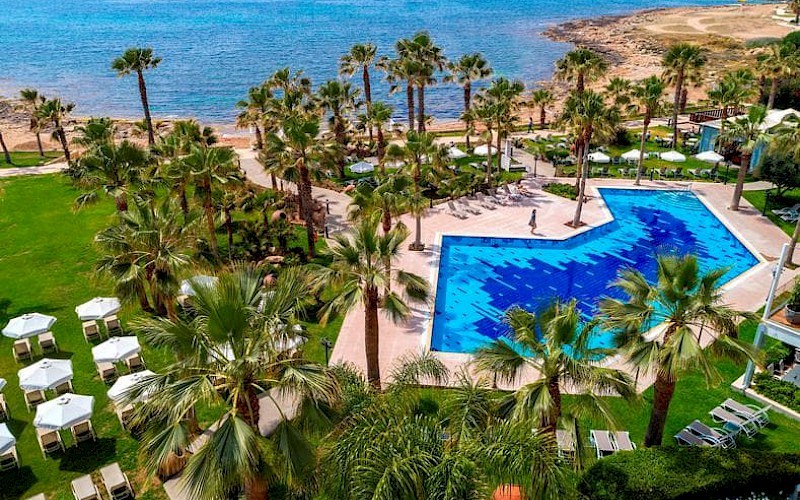 Aquamare Beach & Spa heeft een gunstige ligging direct aan het strand en op loopafstand van de oude haven van Paphos die via de wandelboulevard te bereiken is. De eerste winkeltjes zijn al op 500 meter afstand te vinden en er zijn volop gezellige restaurantjes. Huur je een auto, dan kun je ook gemakkelijk naar de verschillende stranden in de omgeving en diverse indrukwekkende bezienswaardigheden die Cyprus rijk is.