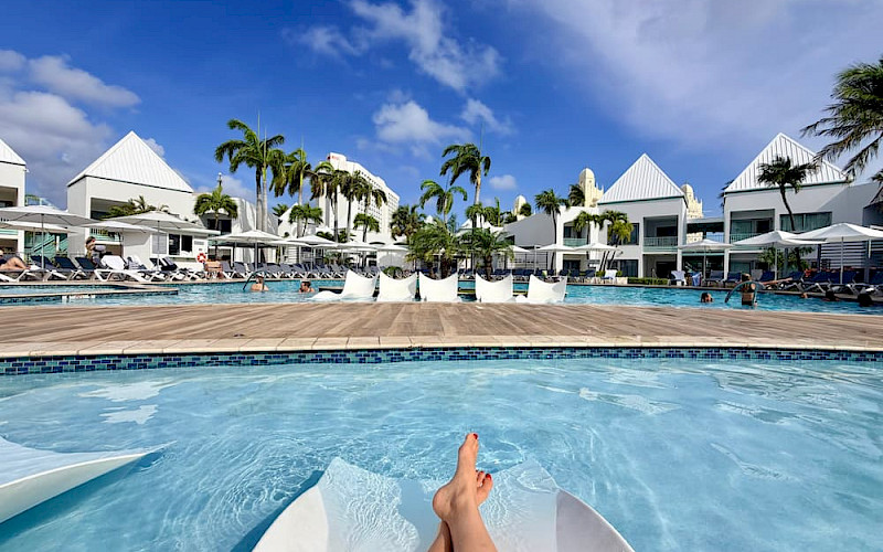 Het strand van Palm Beach ligt op een paar minuten lopen, waar een gratis strandbedje voor je klaarstaat. Geen zin om te lopen? Er is ook een gratis shuttle. Bij het resort zelf plof je lekker neer op een van de comfortabele loungebedden langs het prachtige zwembad óf ga je lekker ontspannen op zo'n ligbedje in het water. Toe aan wat lekkers? Dan zwem je gewoon even naar de swim-up bar in het zwembad!