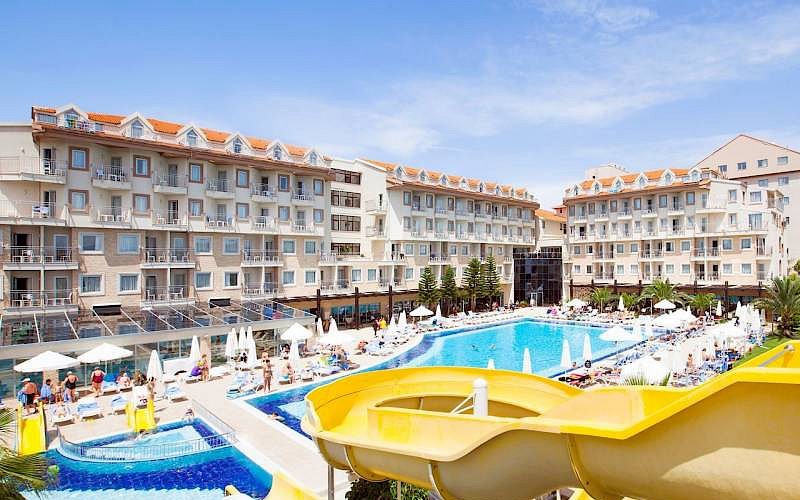 Het hotel is geschikt voor het hele gezin. Er is zelfs een apart zwembad met waterglijbanen voor de jonge vakantiegangers aanwezig. Neem je mooiste boek mee en geniet van de fijne Turkse zon op een van de vele ligbedjes. In de avond schuif je in je netste kleding aan in het buffetrestaurant om heerlijk te eten en te drinken. Mag het altijd vakantie zijn?