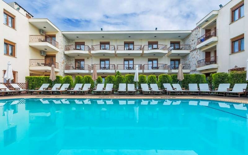 500 meter vanaf het hotel vind je het zandstrand waar je de gehele dag kunt genieten met je voetjes in het zand. Pefkochori ligt op 4 kilometer afstand en is heel leuk om een dagje te bezoeken. Rondom het hotel vind je verschillende restaurants en bars. Een supermarkt vind je 50 meter vanaf het hotel, zodat je ook de nodige boodschappen en lekkernijen in je hotelkamer hebt.