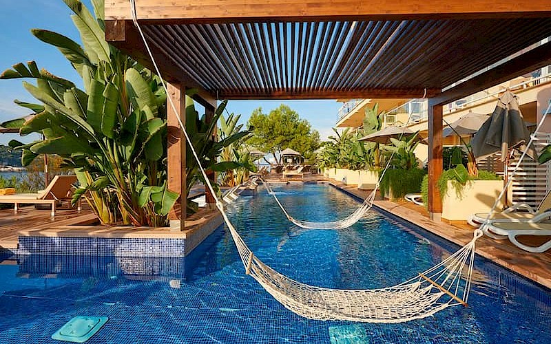 Verblijf in luxe met uitzicht op een schitterende baai bij Iberostar Jardin del Sol Suites. Dit luxe adults only hotel vormt een baken van rust tijdens jouw vakantie naar het schitterende Mallorca. Geniet van het schitterende Spaanse weer en doe een kleurtje op aan het water van een van de zwembaden. Relax in een hangmat boven het zwembad terwijl je luistert naar de golvende Middellandse Zee en het verkoelende briesje wat tussen de palmbomen ruist. Scoor een drankje bij een van de bars en geniet volledig van jouw welverdiende vakantie op Mallorca.