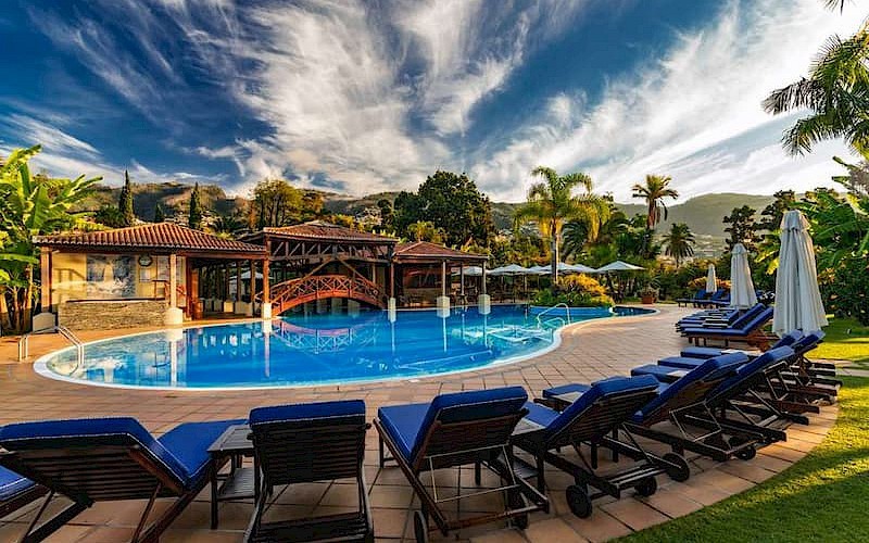 Na een heerlijke dag wandelen door de waanzinnige natuur op het eiland Madeira kom je thuis bij Quinta Jardins do Lago. Dit exclusieve hotel ligt vlak bij het strand zodat je de laatste uurtjes van de dag nog goed kunt spenderen in de zon. Daal neer op een van de strandbedjes die al voor je klaar staan bij het zwembad en neem een heerlijk koud drankje bij de bar. Het hotel heeft een mooi, stijlvol gebouw waar je een restaurant, bar en fitnessruimte vindt.
