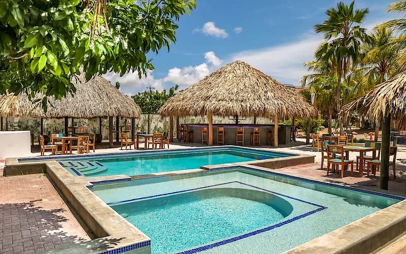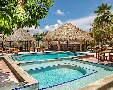 Wil je liever niet koken tijdens je vakantie, dan kun je terecht in het à-la-carterestaurant en in de bar met pizzeria. Een auto is aan te raden, dan kun je ook gemakkelijk zelf op pad en bijvoorbeeld een hapje eten in de hoofdstad Kralendijk. Blijf je een dag bij Resort Bonaire, dan kun je gebruikmaken van de twee fijne buitenzwembaden. Hier geniet je in de zon op de ligbedjes naast het zwembad of in het zand, want hoe gaaf is dit zwembad mét zandstrand?