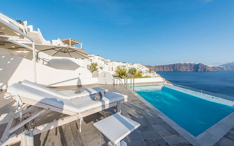 Ga je voor optimale luxe? Kies dan voor een suite met eigen zwembad waar je zo na het ontwaken in kunt springen. Uiteraard is er ook een algemeen buitenzwembad aanwezig waar je kunt zwemmen, relaxen of een boekje kunt lezen. Een hapje eten doe je bij het aangesloten restaurant, waar je naast ontbijt terecht kunt voor een lunch of een diner. Of boek een picknickmand bij je verblijf en ontdek de natuur van het eiland! Het strand van Oia ligt direct voor de deur en wil je wat ondernemen? Wandel dan naar Oia op 450 meter afstand, een prachtig dorp op een heuvel met typische witte huisjes met (soms) blauwe daken.