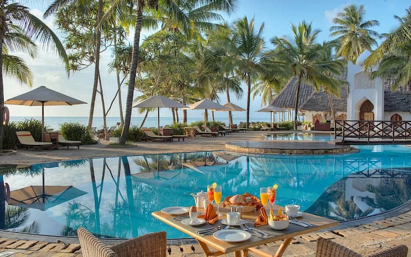 Op Zanzibar zie je een typische stijl: een mix van Arabische en Afrikaanse invloeden. In je ronde huisje tref je een verrassend lichte inrichting met Zanzibari meubels en natuurlijk een klamboe. Je loopt vanuit je huisje zo het strand met wuivende palmbomen op. In de tuin van Sultan Sands Island Resort is het prachtig: vol groen, palmbomen en kleurige hibiscusplanten met daartussen verscholen de prachtig aangelegde zwembaden, bars en (zonne)terrassen waar je heerlijk kunt relaxen.