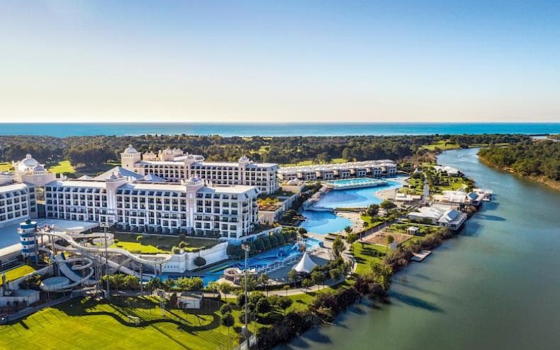 De kamers zijn comfortabel, ruim en stijlvol uitgevoerd. Je beschikt over een eigen balkon met zitje en er zijn ook swim-up kamers met directe toegang tot het zwembad te boeken. Niet alleen het hotel zelf is mooi, ook het omliggende landschap is prachtig. Titanic Deluxe Golf Belek biedt een adembenemend mooi uitzicht op de rivier de Bezgot en beschikt over een privé strand, waar je met de boot naartoe wordt gebracht; een belevenis op zich! Aan zwemmen en waterpret zal het je hier niet ontbreken. Er zijn maar liefst 3 buitenbaden met zoet én zout water, een binnenbad en kinderbaden binnen en buiten. Sportfaciliteiten zijn er ook in overvloed, van aquarobics tot bowlen en van tennis tot beachvolley en nog veel meer!