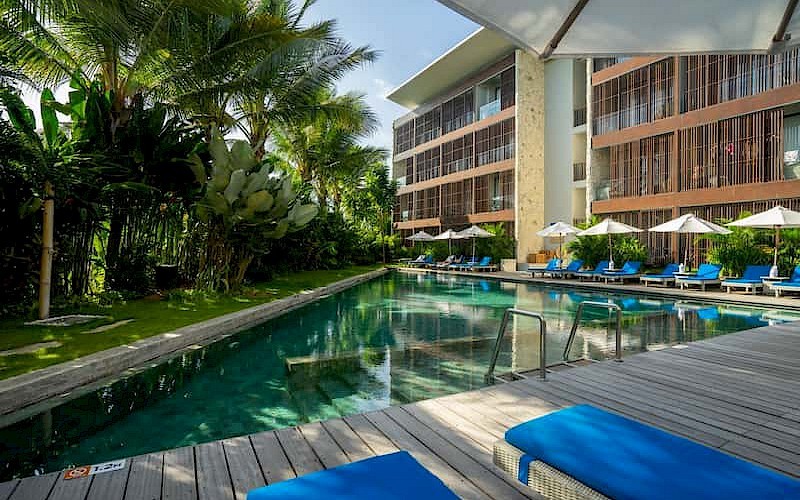 Blijf je dagje in het hotel, dan hoef je je ook zeker niet te vervelen. Het resort heeft 2 zwembaden, 1 aan het strand en 1 in de tuin. Neem een overheerlijk Aziatisch gerecht in het Bumbu restaurant of ga voor een vertrouwd westers gerecht bij de Jivva Beach Club. Om even te relaxen neem je een lesje yoga of ga je naar een van de bioscoop- of muziekavonden.
